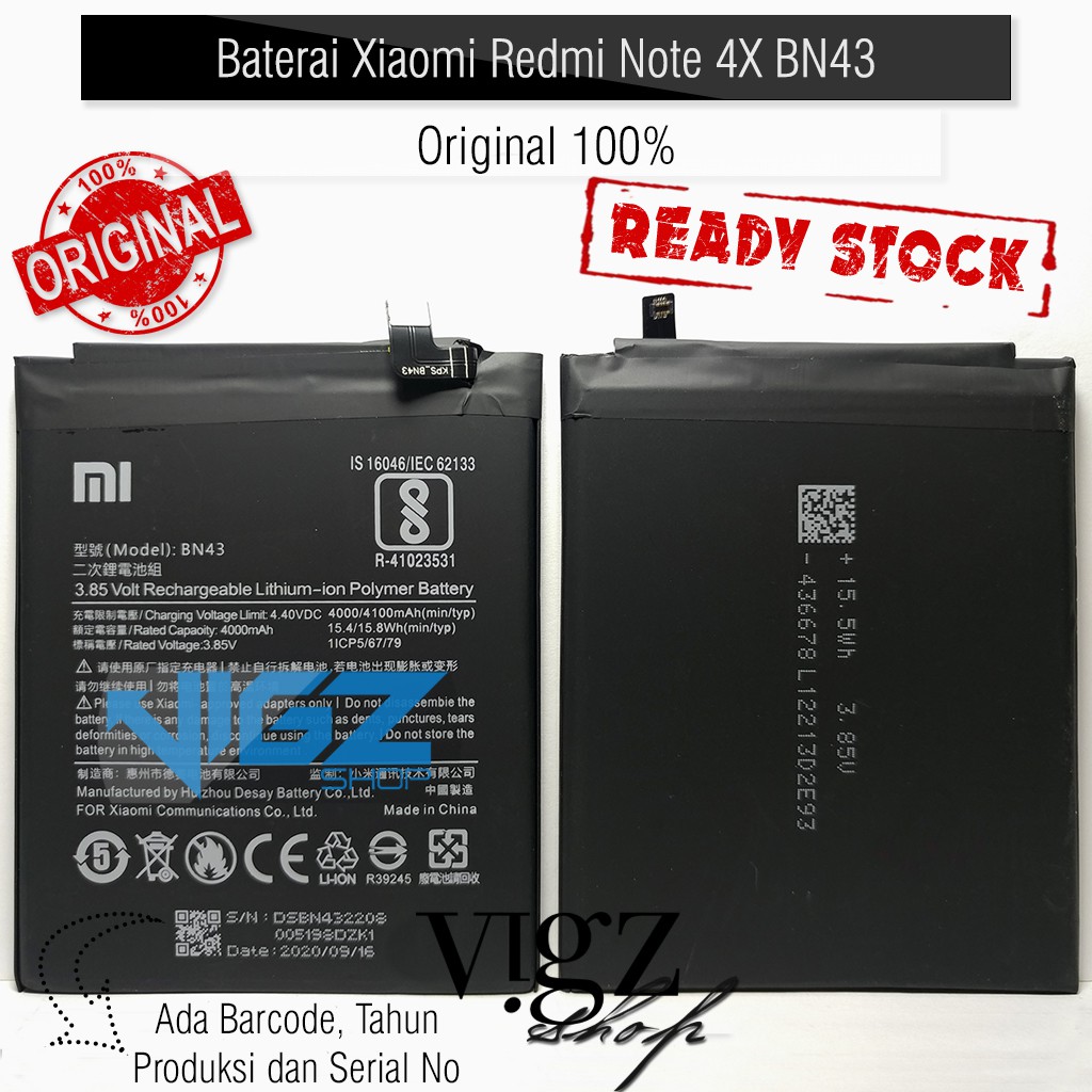 Baterai Xiaomi Redmi Note 4X BN43 Original 100% | Shopee
