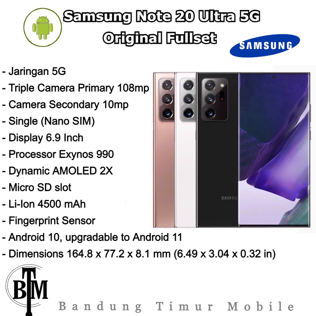 Jual SAMSUNG GALAXY NOTE 20 ULTRA SM-N985F Colour White Black Bronze Di